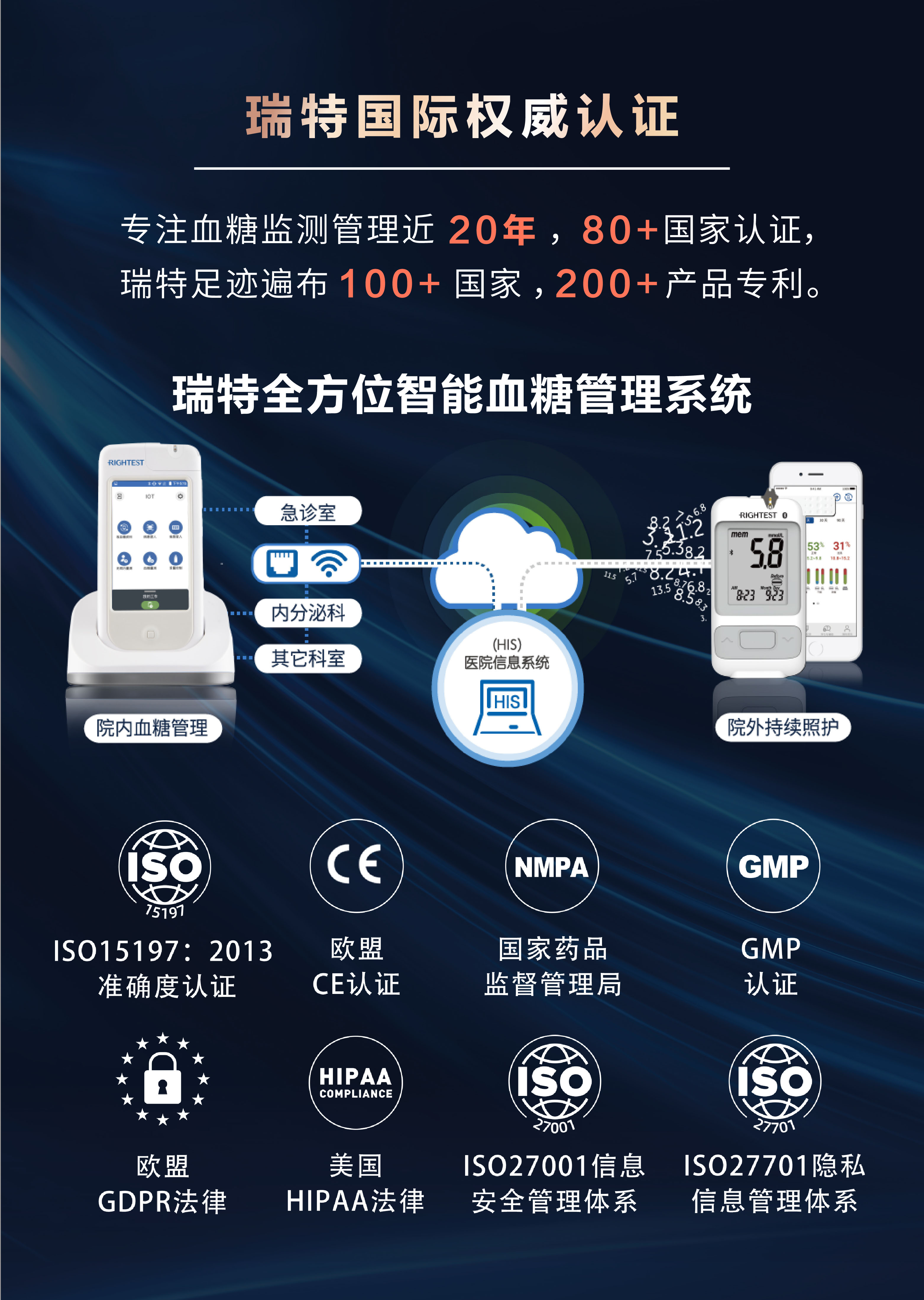 以上認(rèn)證也標(biāo)明瑞特已建立并實(shí)施了完善的信息安全運(yùn)行制度,亦為整個(gè)智能型血糖儀行業(yè)樹立了新的標(biāo)桿。