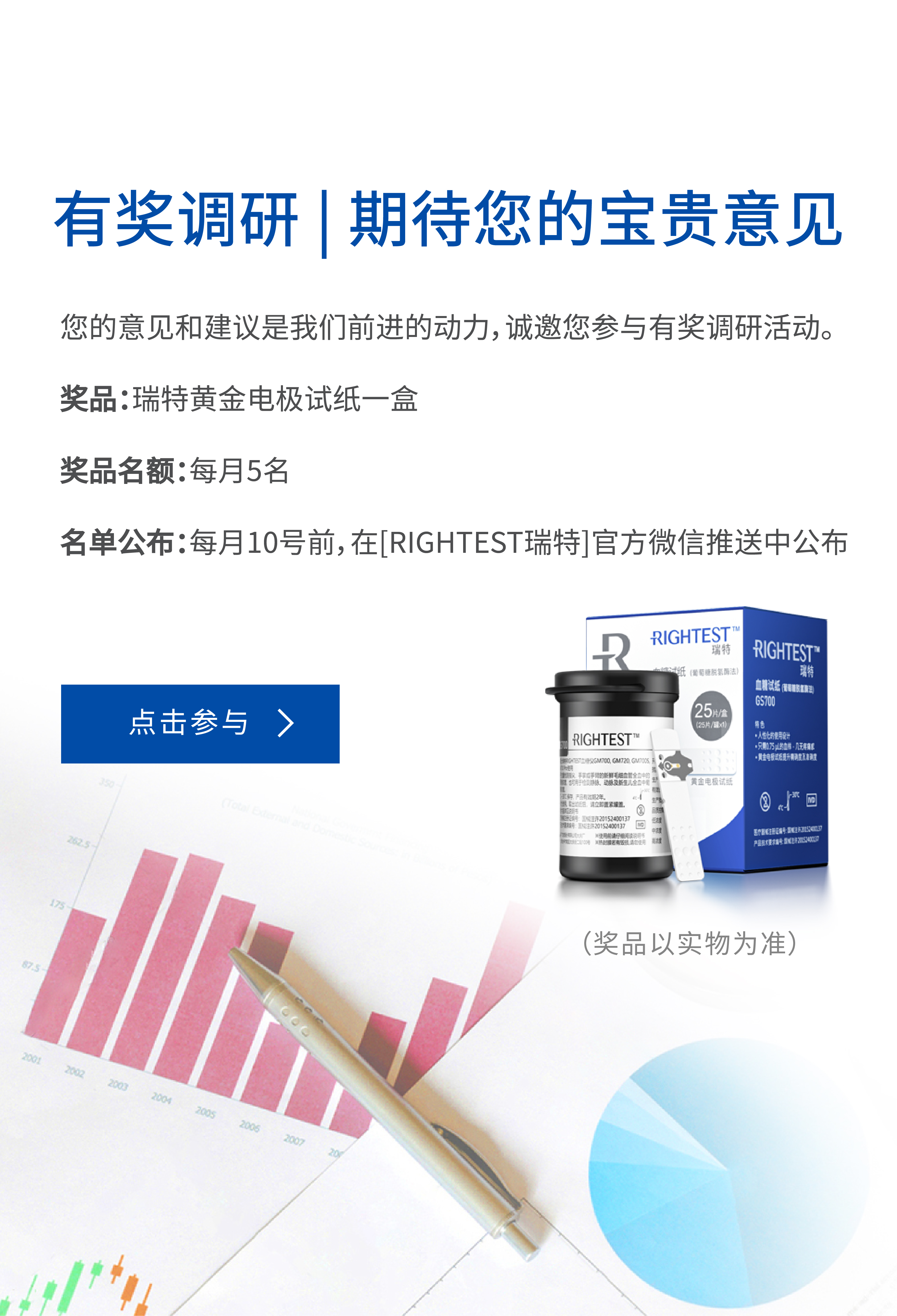 為更加了解糖友們對(duì)瑞特血糖儀產(chǎn)品的使用體驗(yàn),特邀您參與有獎(jiǎng)?wù){(diào)研活動(dòng)。
