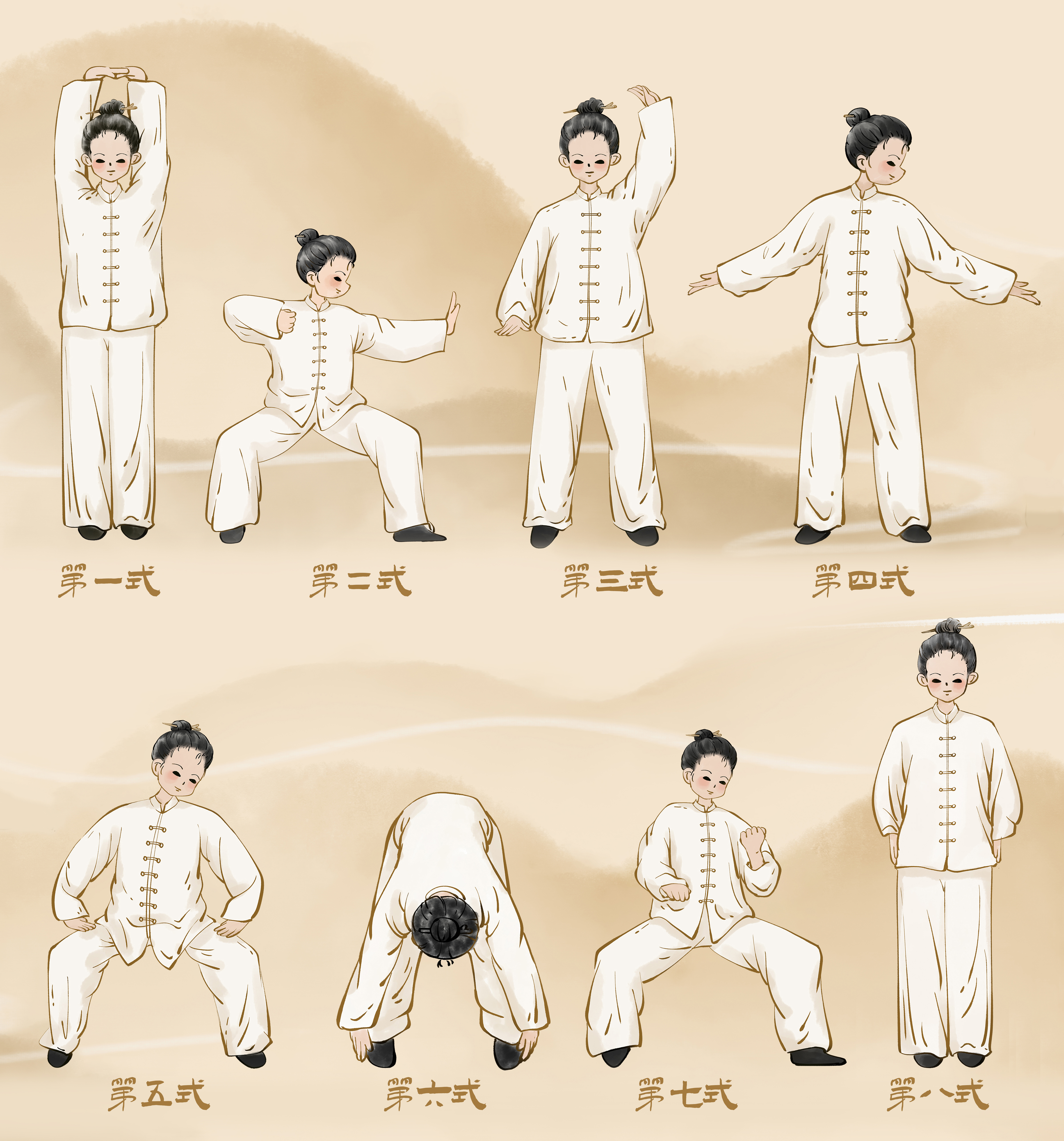 “八段”:指功法由八節(jié)動(dòng)作組成;“錦”指錦緞,體現(xiàn)功法動(dòng)作優(yōu)美柔順,舒展大方。